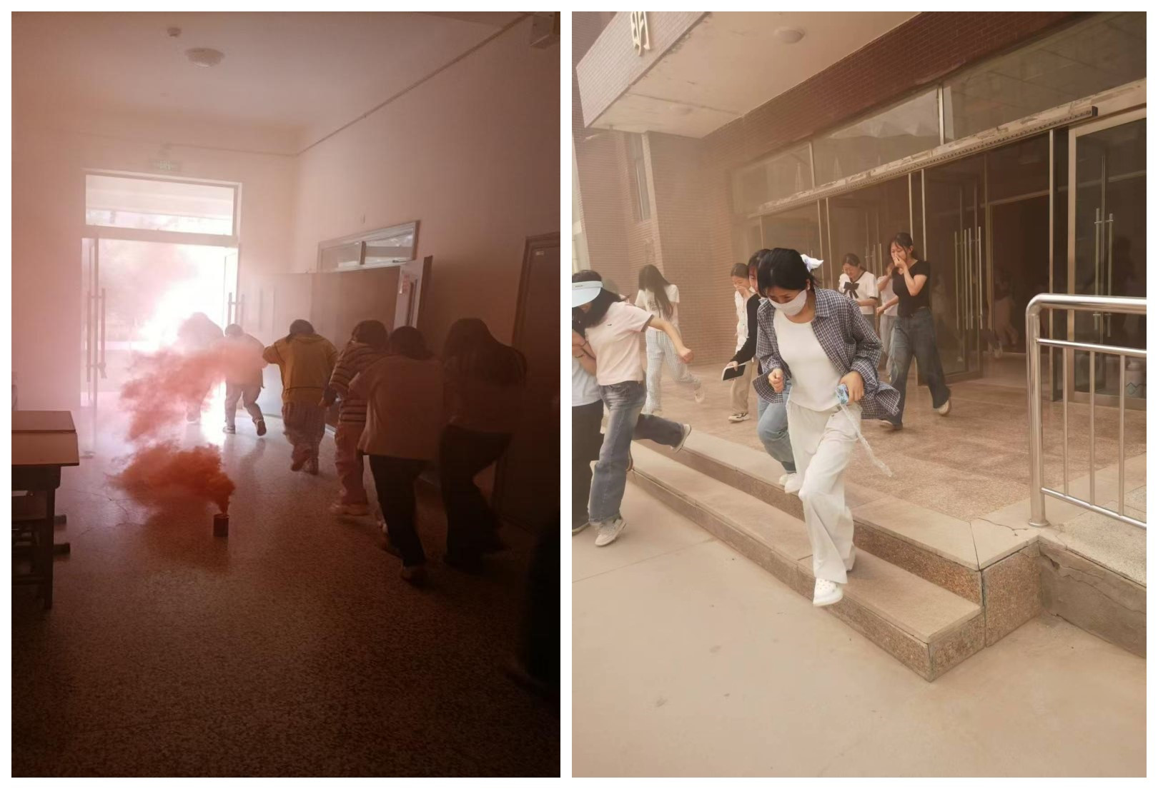 下午4點(diǎn)30分,隨著警報(bào)響起,演練正式拉開帷幕。安保人員迅速點(diǎn)燃預(yù)先放置在各樓宇內(nèi)的煙霧彈,一瞬間樓宇內(nèi)濃煙彌漫,同學(xué)們迅速捂住口鼻、彎腰低姿從消防疏散通道,有序地向安全區(qū)域疏散撤離。演練過(guò)程中,同學(xué)們沉著冷靜,動(dòng)作迅速規(guī)范,僅用短短幾分鐘時(shí)間便全部安全疏散到校園廣場(chǎng)等開闊地帶。