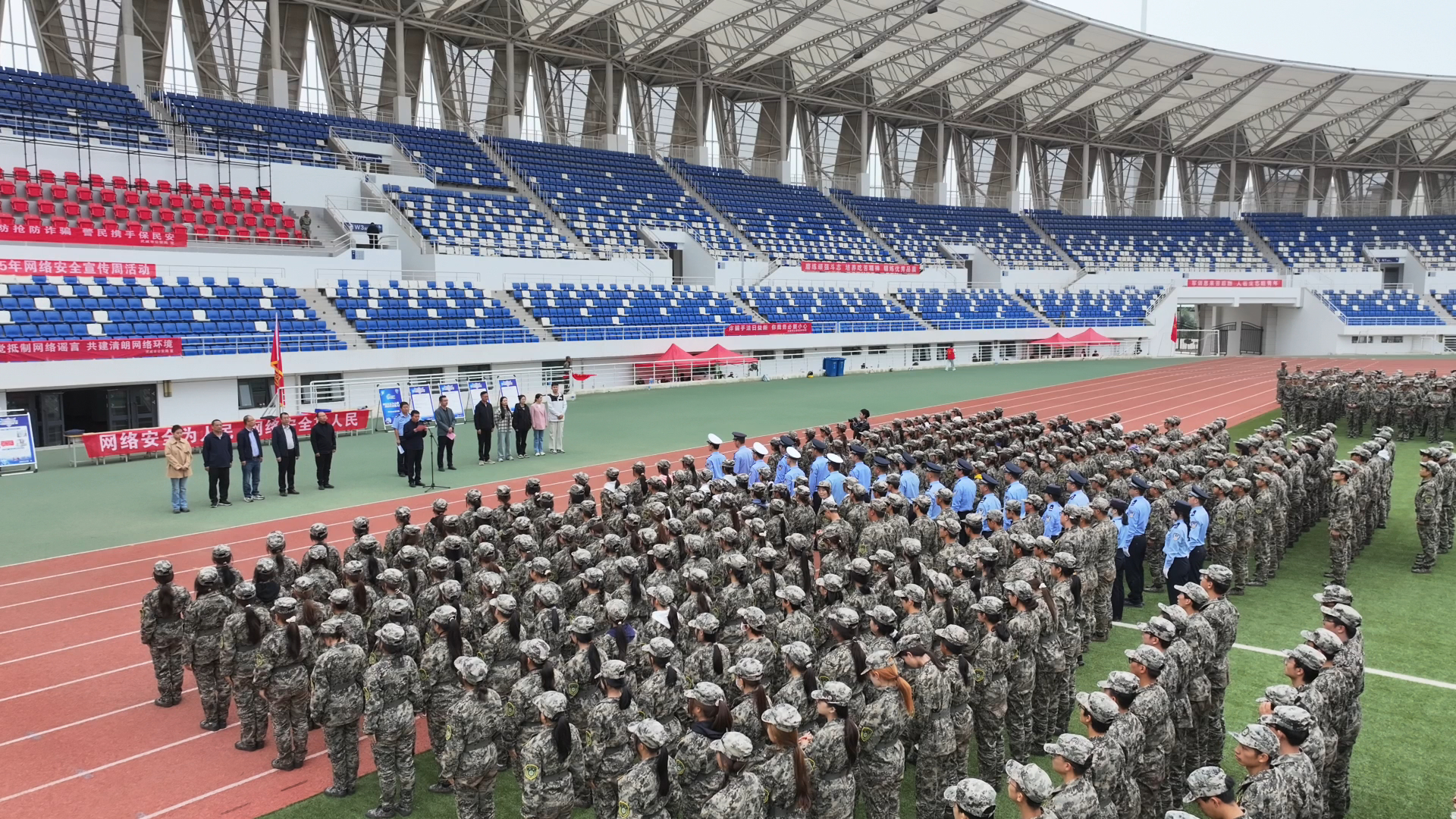 9月18日,武威市公安局網(wǎng)安支隊(duì)聯(lián)合武威職業(yè)技術(shù)大學(xué)在學(xué)校體育場(chǎng)舉辦2025年網(wǎng)絡(luò)安全宣傳周集中宣傳活動(dòng)。此次活動(dòng)以“網(wǎng)絡(luò)安全為人民,網(wǎng)絡(luò)安全靠人民——以高水平安全守護(hù)高質(zhì)量發(fā)展”為主題,旨在進(jìn)一步提升廣大師生的網(wǎng)絡(luò)安全意識(shí)和防護(hù)技能,營(yíng)造清朗有序的校園網(wǎng)絡(luò)環(huán)境。武威市公安局網(wǎng)安支隊(duì)支隊(duì)長(zhǎng)張建軍,學(xué)校網(wǎng)絡(luò)安全與信息技術(shù)中心工作人員,各學(xué)院輔導(dǎo)員現(xiàn)場(chǎng)參加活動(dòng)。