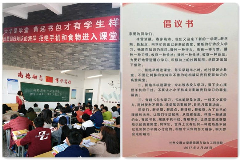 新學(xué)期伊始,新能源學(xué)院要求所有班主任及輔導(dǎo)員老師除了做好學(xué)生課堂管理工作、宿舍安全衛(wèi)生工作、密切關(guān)注“三困生”等常規(guī)工作之外,重點(diǎn)部署了安全預(yù)警教育和“三要求一倡導(dǎo)”教育活動,即要求學(xué)生上課必須關(guān)閉手機(jī)、不得將食品帶入課堂、不準(zhǔn)在公共場所吸煙,倡導(dǎo)學(xué)生背書包。