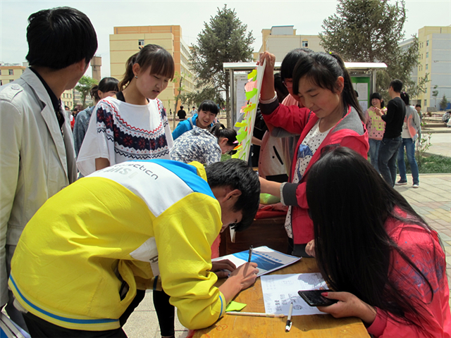 我系青年志愿者在校園設(shè)立了固定宣傳位,設(shè)計制作了展板,開展了“讓我們一起光盤吧”簽字征集活動,并在食堂餐桌上張貼光盤行動的小便簽,與前來就餐的同學(xué)互動。此外,志愿者還利用網(wǎng)絡(luò)社交平臺、微博、微信等新媒體進行宣傳,深化了青年志愿者精神、踐行了文明新風(fēng)、收到了良好的效果,。