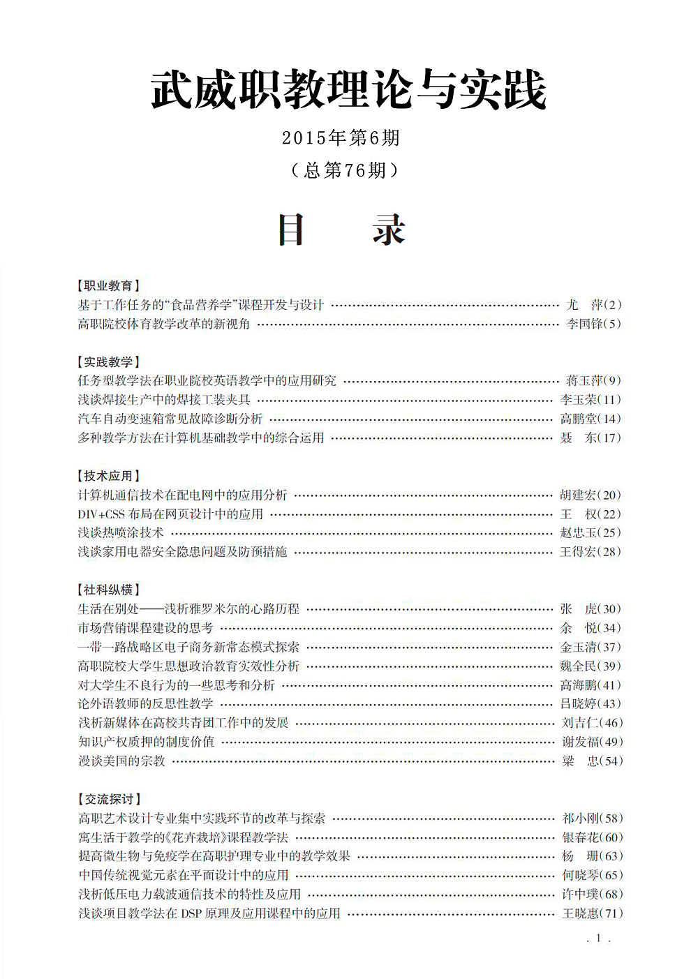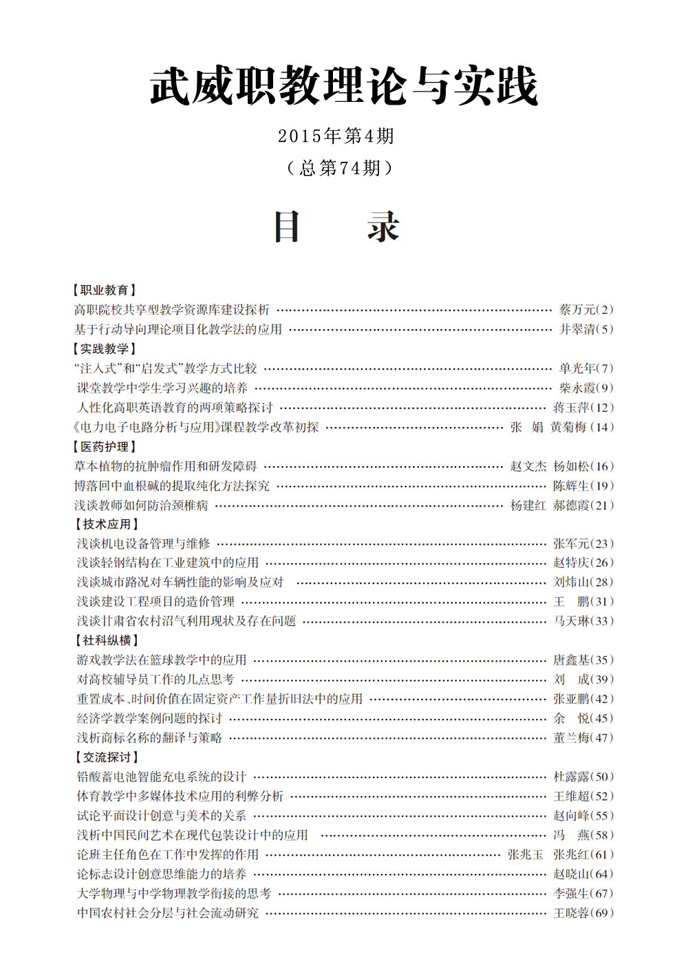 2015年《武威職教理論與實踐》目錄