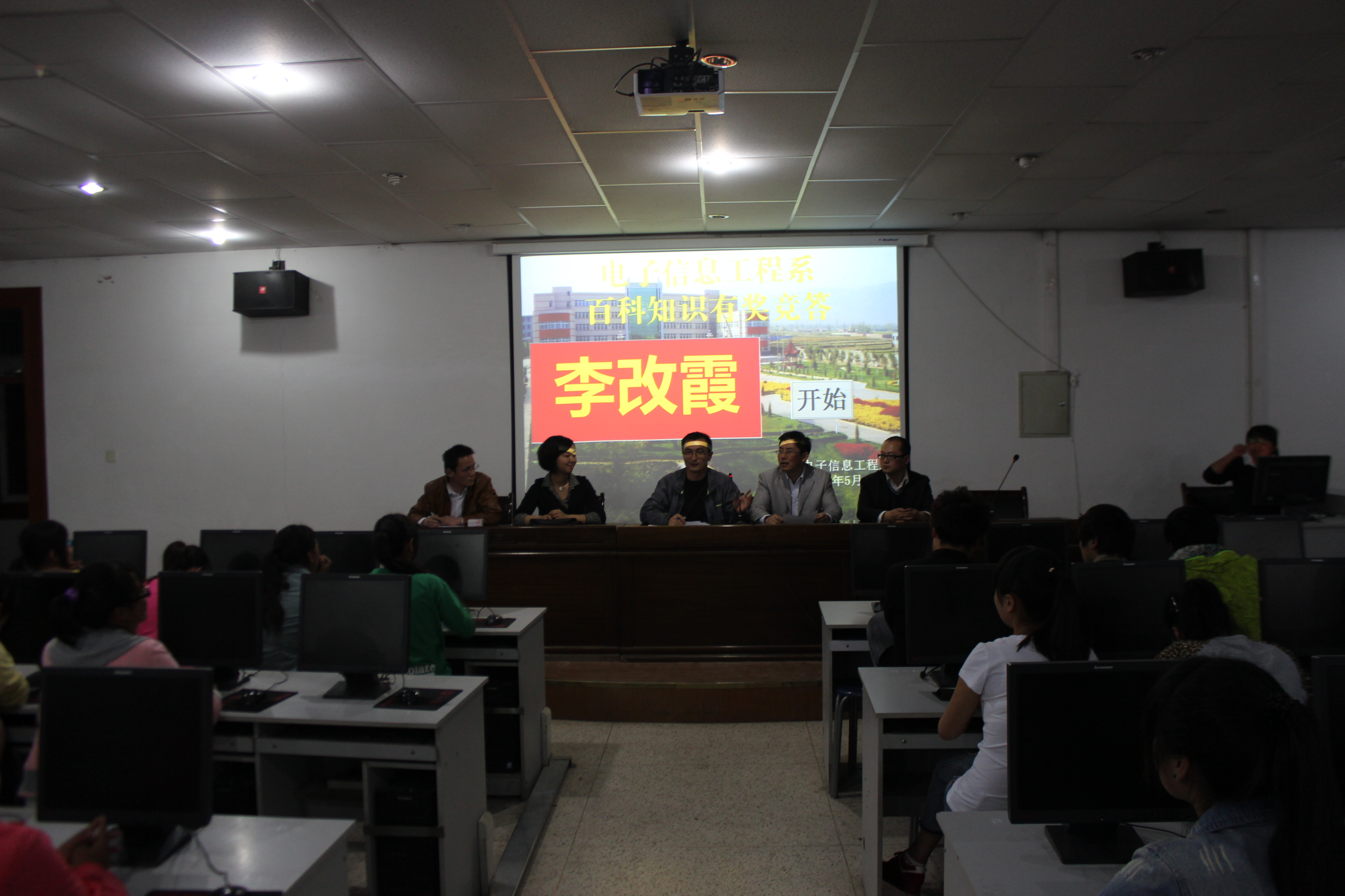 為提高大學(xué)生的綜合素質(zhì),拓展大學(xué)生視野,豐富大學(xué)生活。電子信息工程系團(tuán)總支于5月19日晚在學(xué)院十號機(jī)房舉辦了百科知識有獎競答活動。系輔導(dǎo)員、團(tuán)總支書記、班主任及200多名在校學(xué)生和參加了活動。
