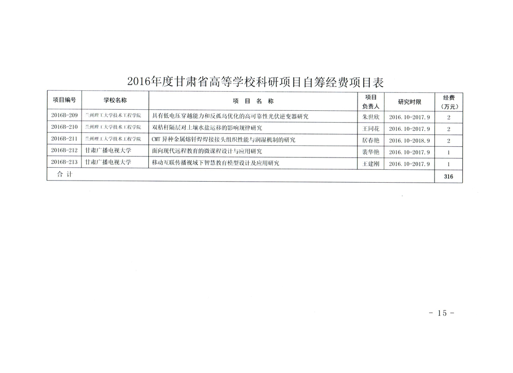 甘肅省教育廳關于下達2016年度甘肅省高等學??蒲许椖孔曰I經(jīng)費項目的通知