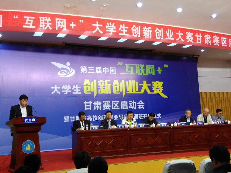 54日,第三屆中國“互聯(lián)網(wǎng)+”大學(xué)生創(chuàng)新創(chuàng)業(yè)大賽甘肅賽區(qū)啟動(dòng)會(huì)暨甘肅省高校創(chuàng)新創(chuàng)業(yè)導(dǎo)師培訓(xùn)在蘭州理工大學(xué)逸夫科技館舉行。大賽由甘肅省教育廳主辦,蘭州理工大學(xué)和新道科技股份有限公司具體承辦。我院黨委副書記趙明,創(chuàng)新創(chuàng)業(yè)中心主任胡建宏及受訓(xùn)導(dǎo)師申賓德和王鐸云受邀參加了啟動(dòng)儀式。啟動(dòng)儀式由蘭州理工大學(xué)副校長韋堯兵主持。