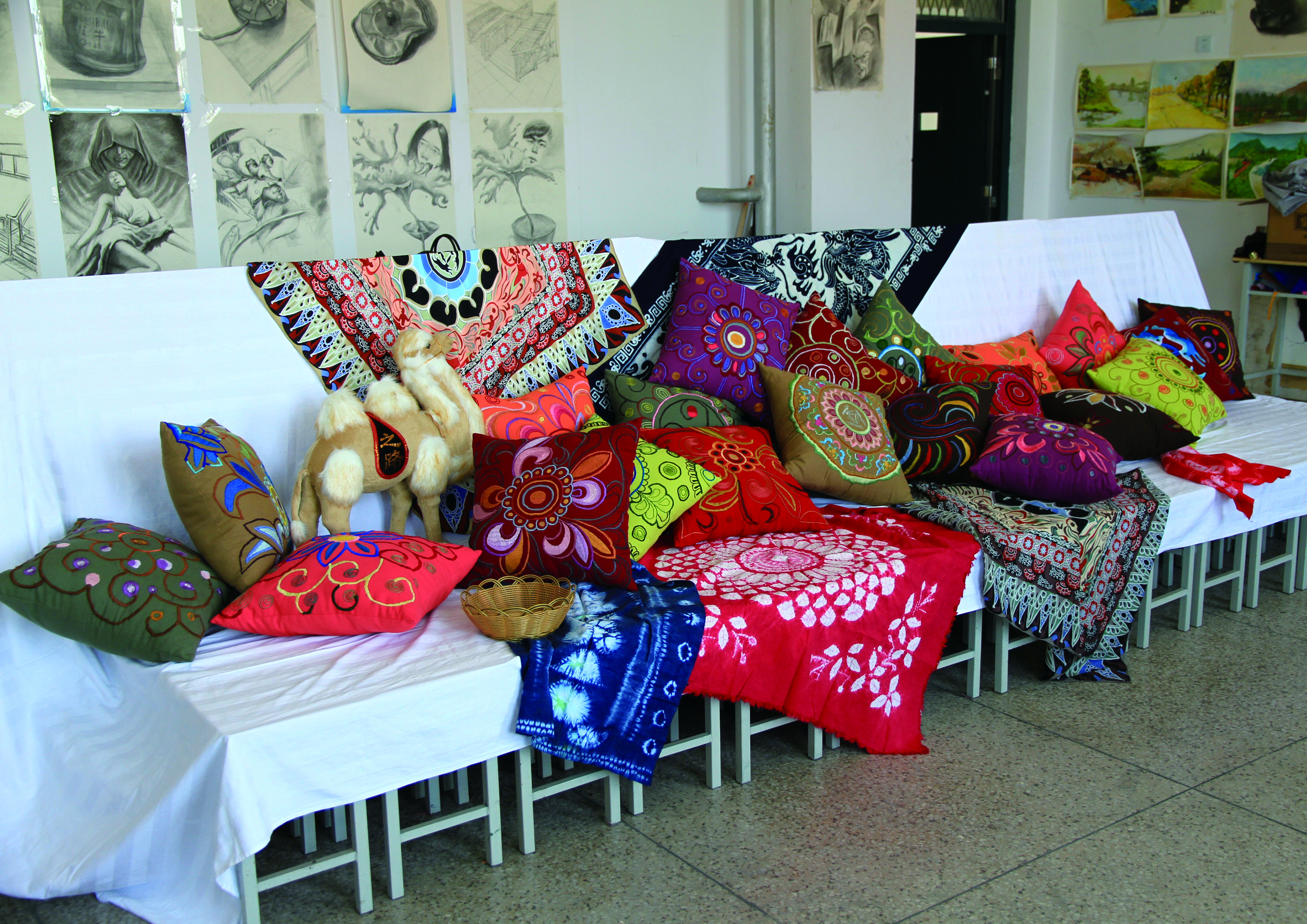 恰逢“一帶一路”偉大戰(zhàn)略構(gòu)想開(kāi)展之際,近日,為迎接“第二屆敦煌絲綢之路國(guó)際文化博覽會(huì)”的勝利召開(kāi),人文藝術(shù)教育系組織學(xué)前教育專(zhuān)業(yè)師生積極研發(fā)創(chuàng)意旅游作品,參加由省婦聯(lián)、省教育廳、省高校工委組織的“第一屆女大學(xué)生巧手創(chuàng)意大賽”。學(xué)院人文藝術(shù)教育系利用武威地處絲綢之路經(jīng)濟(jì)帶“咽喉”的區(qū)位優(yōu)勢(shì),挖掘古絲綢之路文化,激發(fā)學(xué)生創(chuàng)新創(chuàng)業(yè)能力,以精美的敦煌壁畫(huà)藻井圖案為造型元素,用刺繡的手法設(shè)計(jì)制作裝飾、實(shí)用效果極佳的抱枕等紡織作品,作品傳承了古絲綢之路文化,承載著廣大師生對(duì)敦煌藝術(shù)的向往和追求。參賽作品展現(xiàn)了人文藝術(shù)教育系學(xué)生的精美刺繡工藝和獨(dú)特的創(chuàng)意手法,體現(xiàn)了人文藝術(shù)教育系特色教學(xué)成果。據(jù)悉,參賽優(yōu)秀作品將在“第二屆敦煌絲綢之路國(guó)際文化博覽會(huì)”上展出。