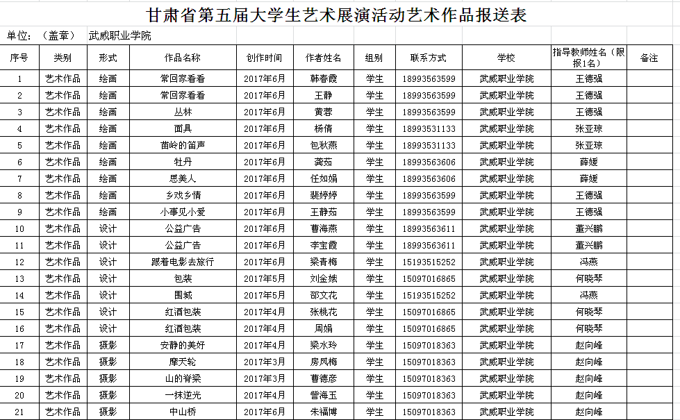 - 下一篇:人文藝術教育系教師在首屆甘肅省中等職業(yè)學校藝術教育學科微課比賽中喜獲…[ 06-22 ]
