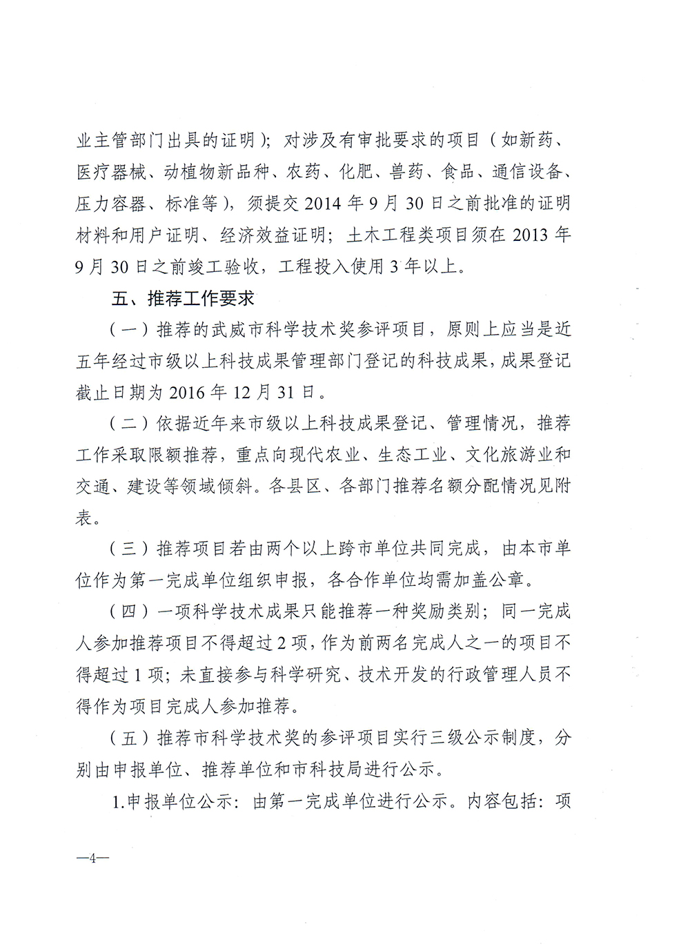 轉發(fā)武威市科學技術局關于做好2017年度市科學技術獎推薦工作的通知